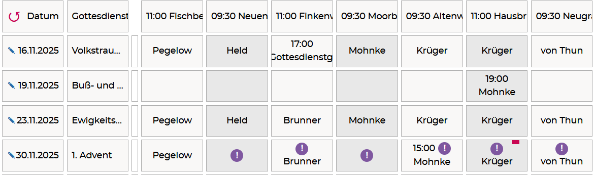 –> In der nachfolgenden Tabelle stehen die Gottesdienste in der Region Süderelbe für den November 2025.