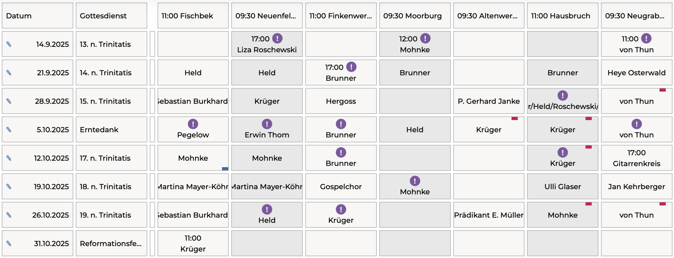 –> In der nachfolgenden Tabelle stehen die Gottesdienste in der Region Süderelbe für den September/ Oktober 2025.