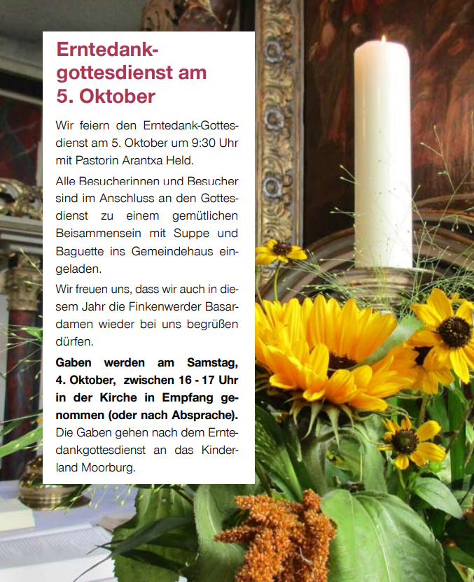 Ab sofort sind unsere aktuellsten Moorburger Gemeindebriefe auch >> hier << auf der Homepage zu finden!